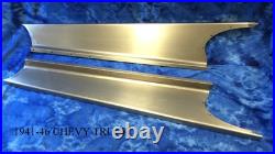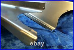 Custom made to order premium quality 1018, 16 gauge cold rolled steel set of steel running boards with adapters to fit to your original braces. Heavy gauge steel will not give way like fiberglass boards. Made from original board patterns but smoothed for hot rod look. The overall length is 83 1/8.