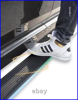Due to the difference between monitors, the picture may not reflect the actual color of the item, but we guarantee that the item is exactly as the picture shown. Please send us the photos of your vehicle to confirm the fitment if you are not sure about the cab style after checking the cab size picture. What is electric running board(E-board)? Smart electric pedal is a high-end automatic retractable pedal suitable for mid-to-high-end SUV models. It has five intelligent systems such as "smart door sensing system", "intelligent obstacle detection system", and "manual automatic control system". Intelligent new products are designed to provide car owners and passengers with the most practical, comfortable, intelligent and safe VIP-level exclusive enjoyment at the top of the pyramid. Combining the ground clearance of the SUV body and the door space, a similar stepped pedal structure is designed. The ground clearance of the pedal is between 130mm-180mm, and the clearance between the pedal and the body threshold is between 50mm-130mm. Aluminum Alloy, PP Plastic, ABS. In order to facilitate users to get on and off the bus, especially for women and children. After installing electric pedals, the overall model can be more beautiful and coordinated. Compared with the fixed pedal, it will not reduce the passability of the car body. Pedal profile of smart electric pedal. The beautiful arc design makes the pedals more closely to the body and the appearance is more beautiful. Alloy die-casting reinforced nuts are safer and stronger. Adopting advanced 4-row inner card nut reinforcement design technology, which effectively guarantees the uniform force of the entire pedal, and the powerful inner card screw fixation makes the pedal never loose. The end of the pedal is made of high-quality ABS engineering materials, which are resistant to cold, high temperature, and impact resistance.