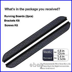MATERIAL AND COLOR: These Running Boards, Top-Quality Aluminum Alloy + ABS Plastic. Approximately 4.8 Inches (12cm) Wide And Approximately 1.4 Inches (3.5cm) Thick, The side steps Are Equipped With Black Granular Decorations, Which Also Serve As Anti-slip Devices, Offering A Stylish Design That Enhances Vehicle Aesthetics While Providing Safe And Easy Access. IT'S THE PERFECT FUNCTIONAL UPGRADE ACCESSORIES: The Side Steps Offer A Safe And Comfortable Stepping Surface For The Whole Family To Get In And Out Of The Vehicle.